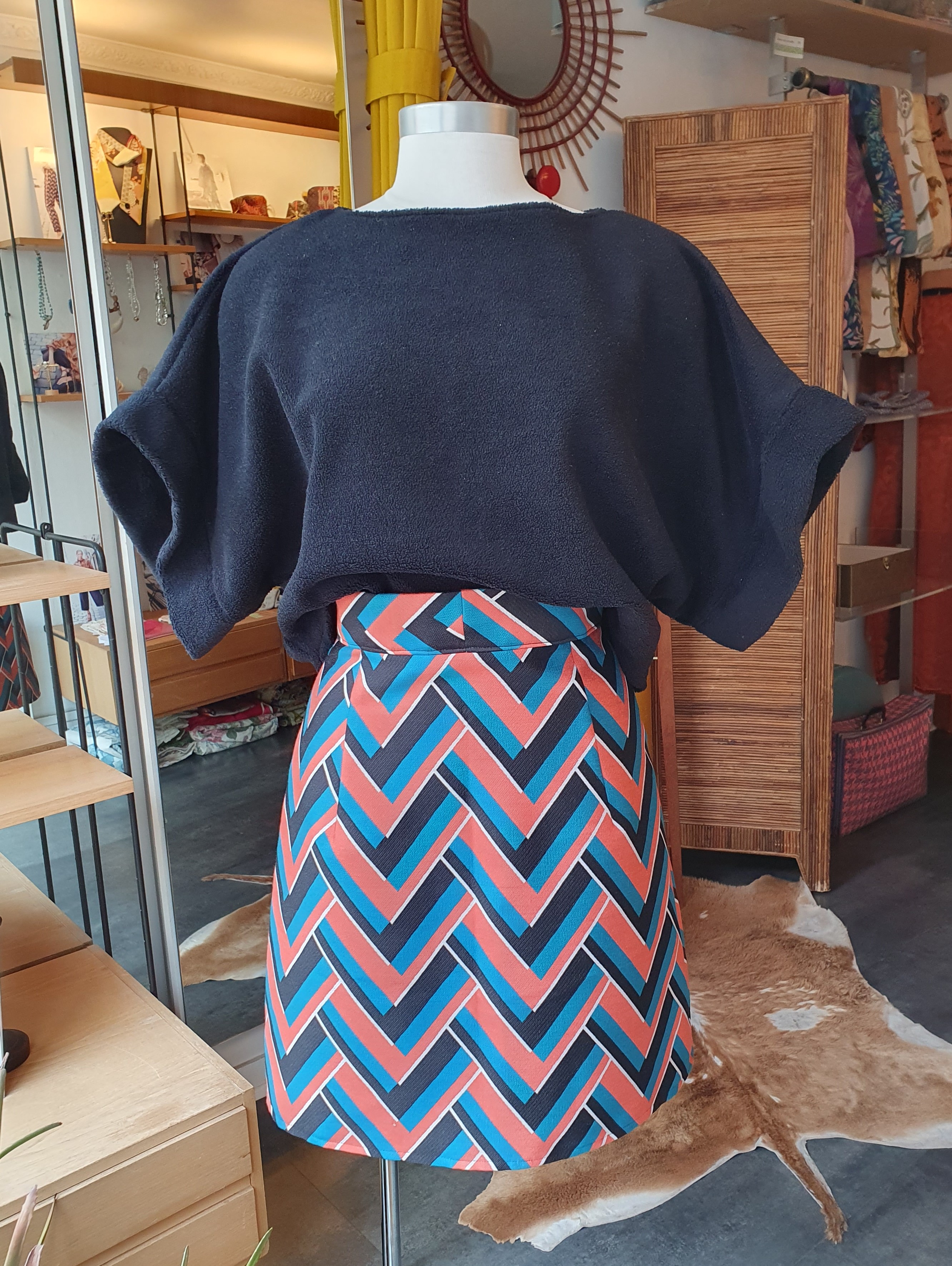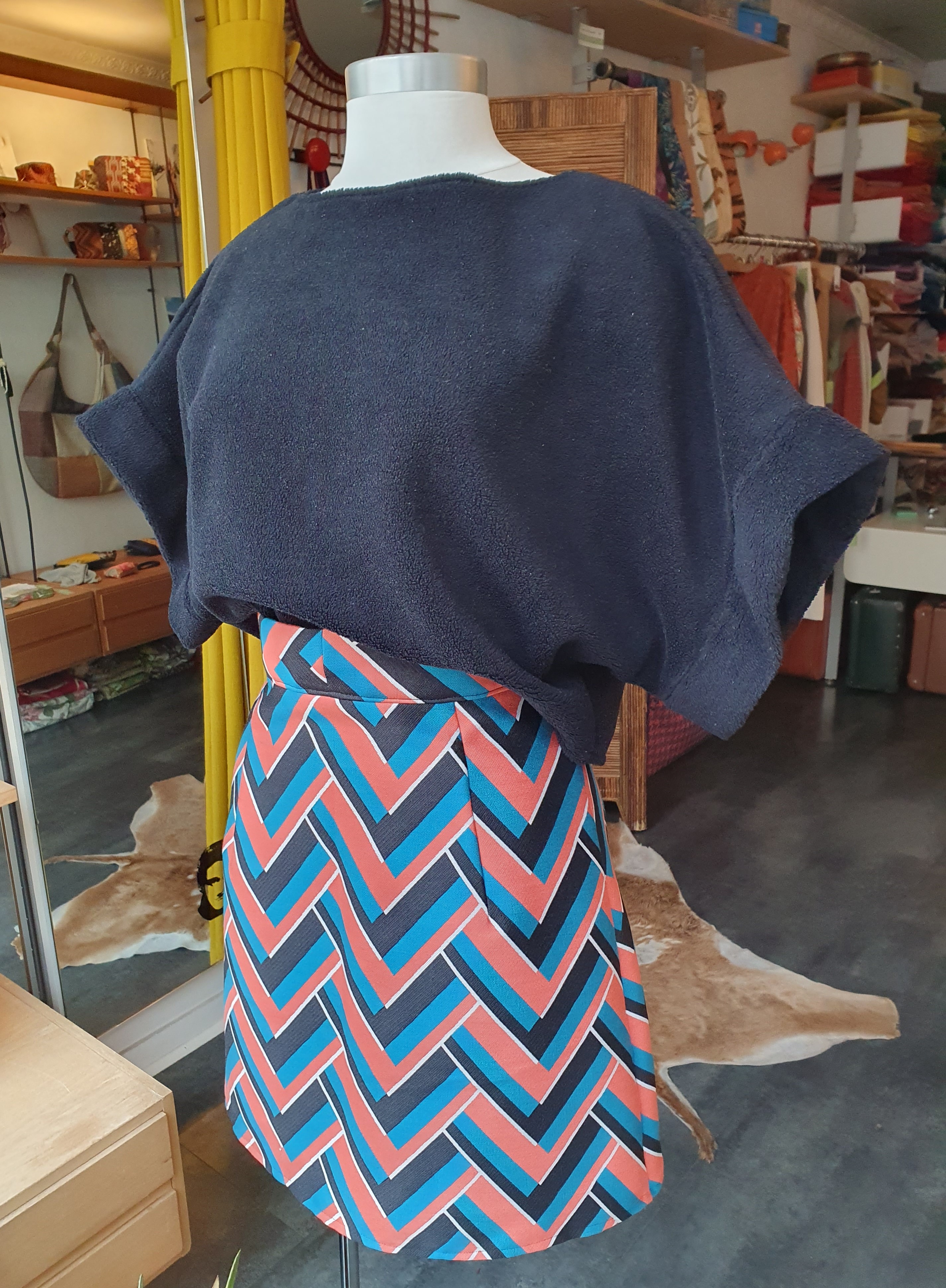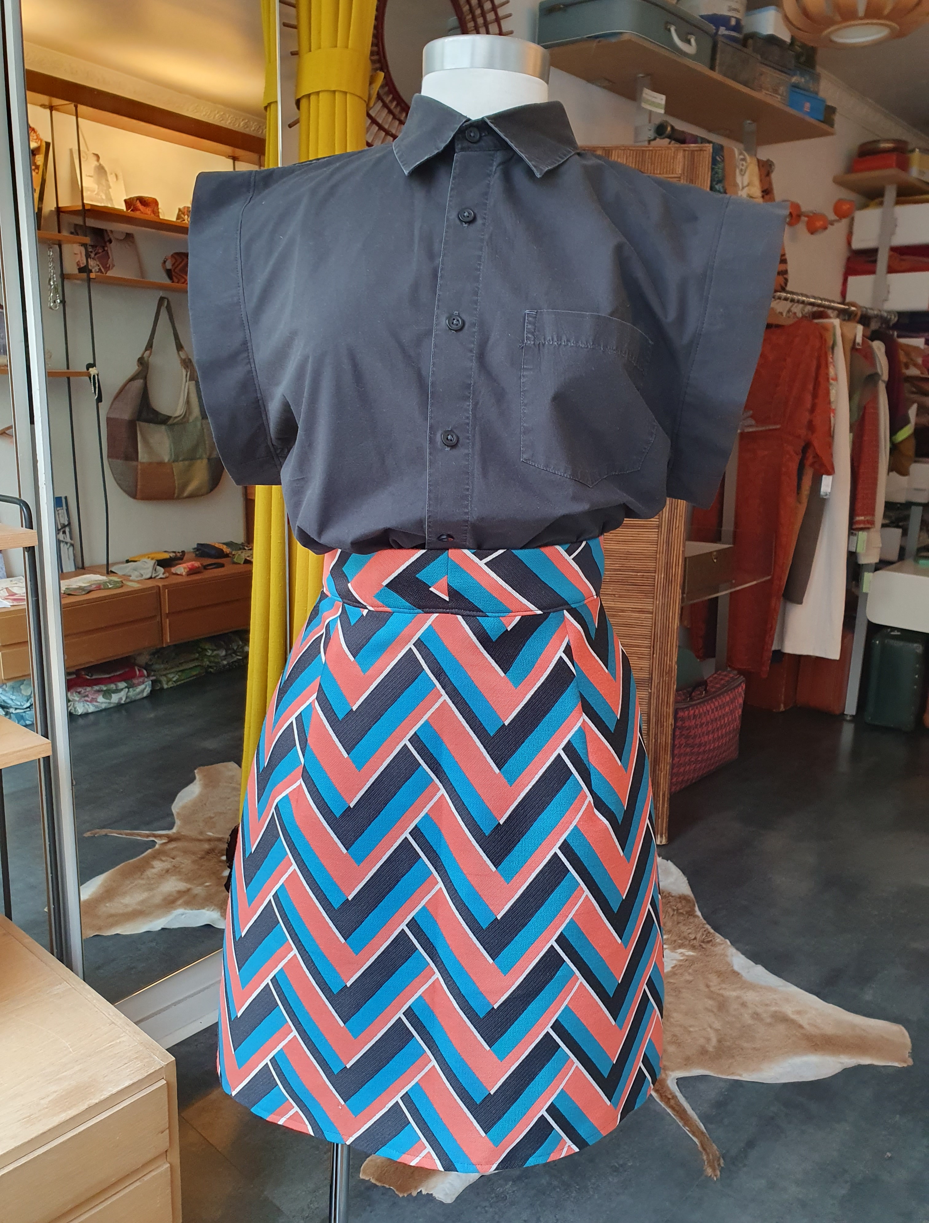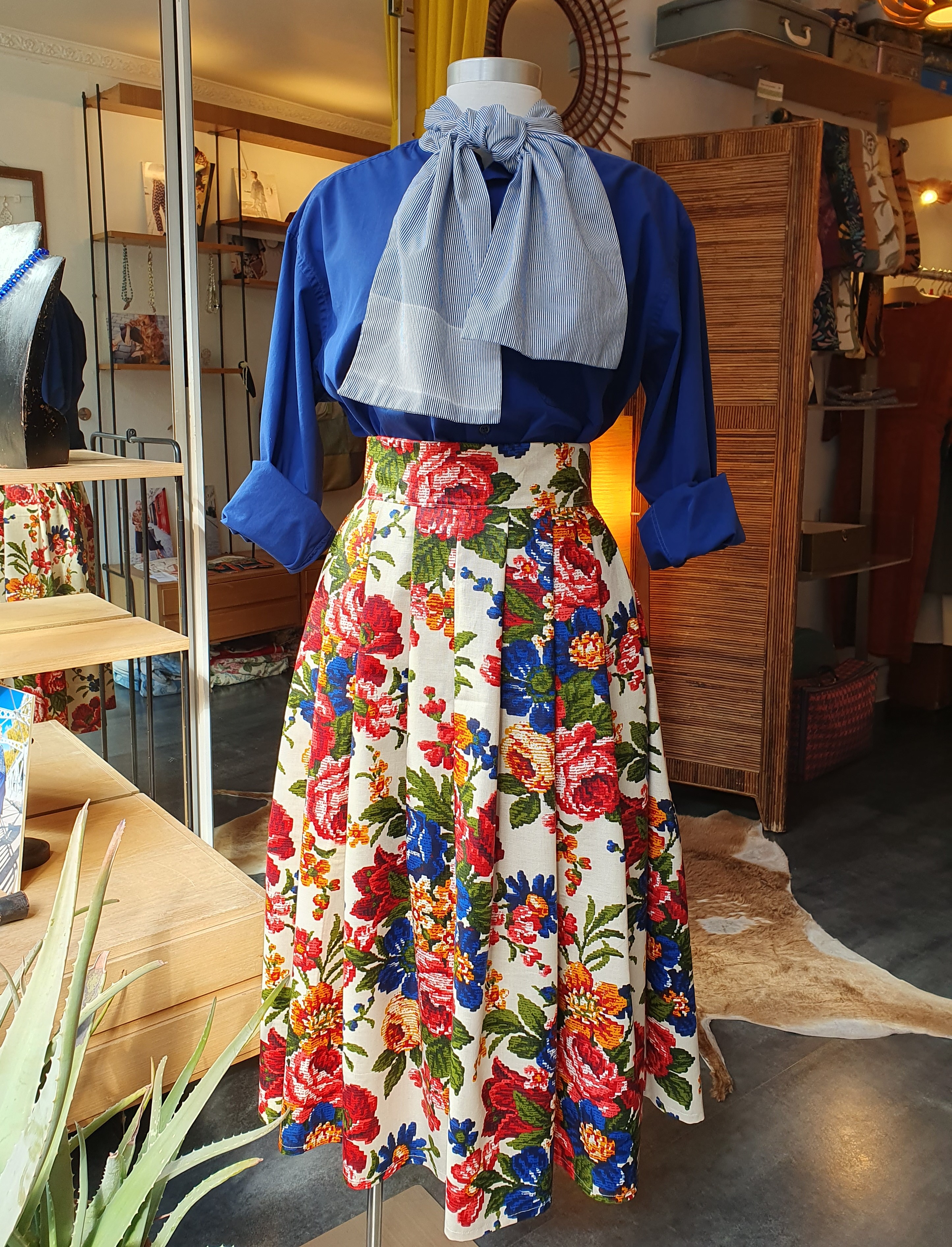 Une jupe pour toutes les saisons. Parfaite avec des tennis, bottes, talons, ou nu-pieds. Coton imprimé vintage. Poches invisibles sur les côtés. T. 38/40. PIECE UNIQUE