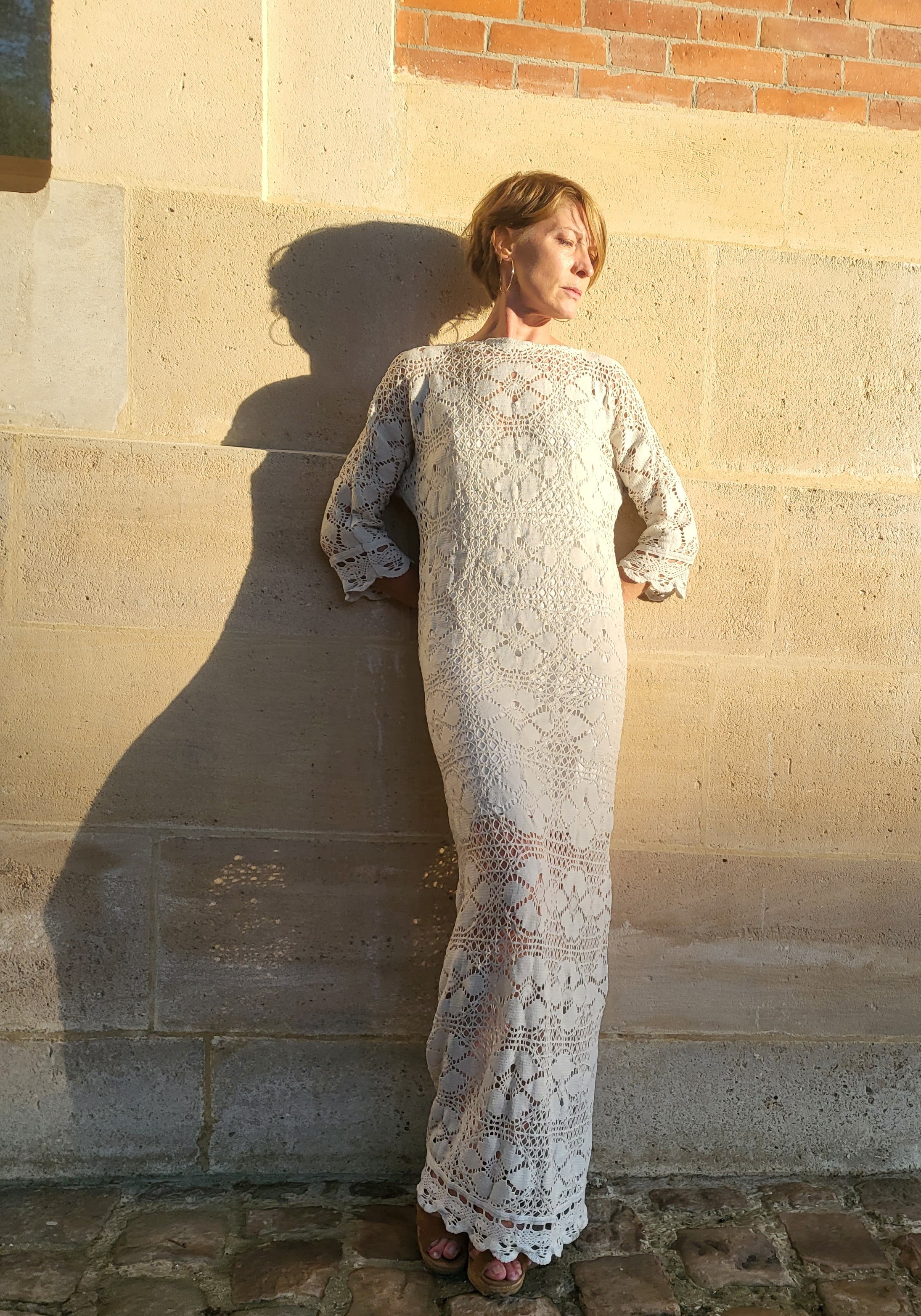 Une robe pour ne pas passer inaperçue cet été. À porter sur un dessous de robe, maillot de bain, ou ... ? Crochet de coton vintage. T. 36/38. PIECE UNIQUE