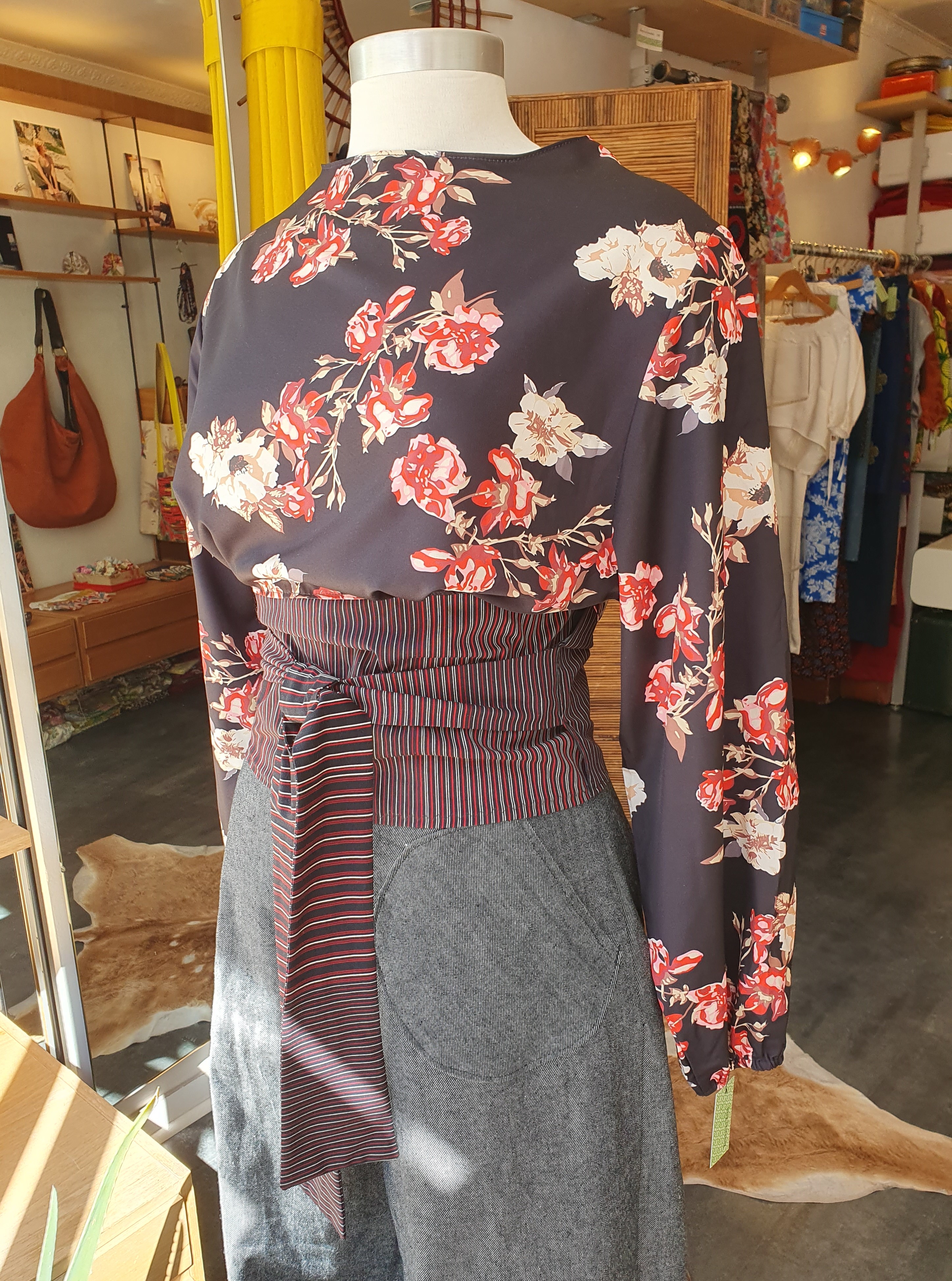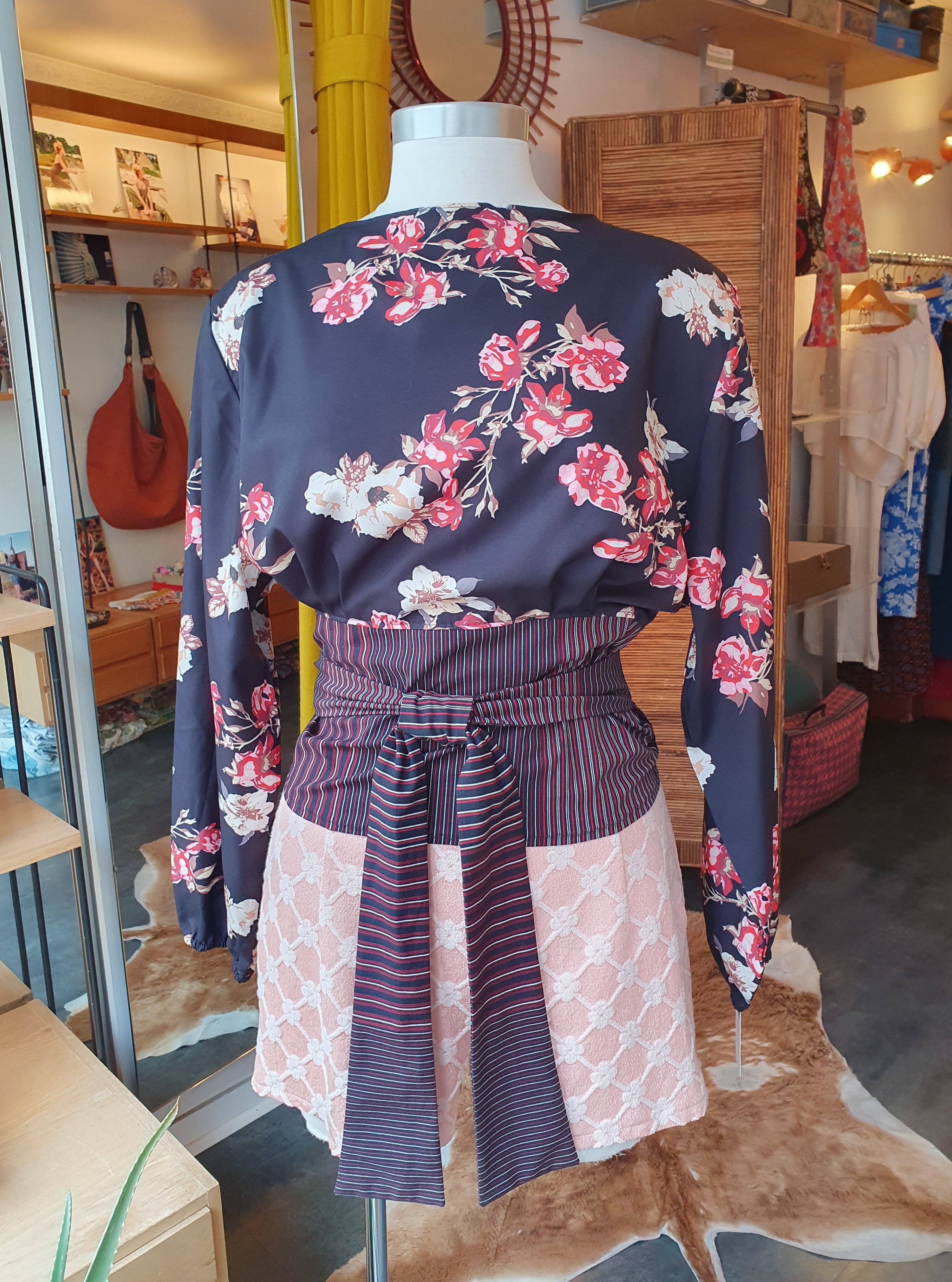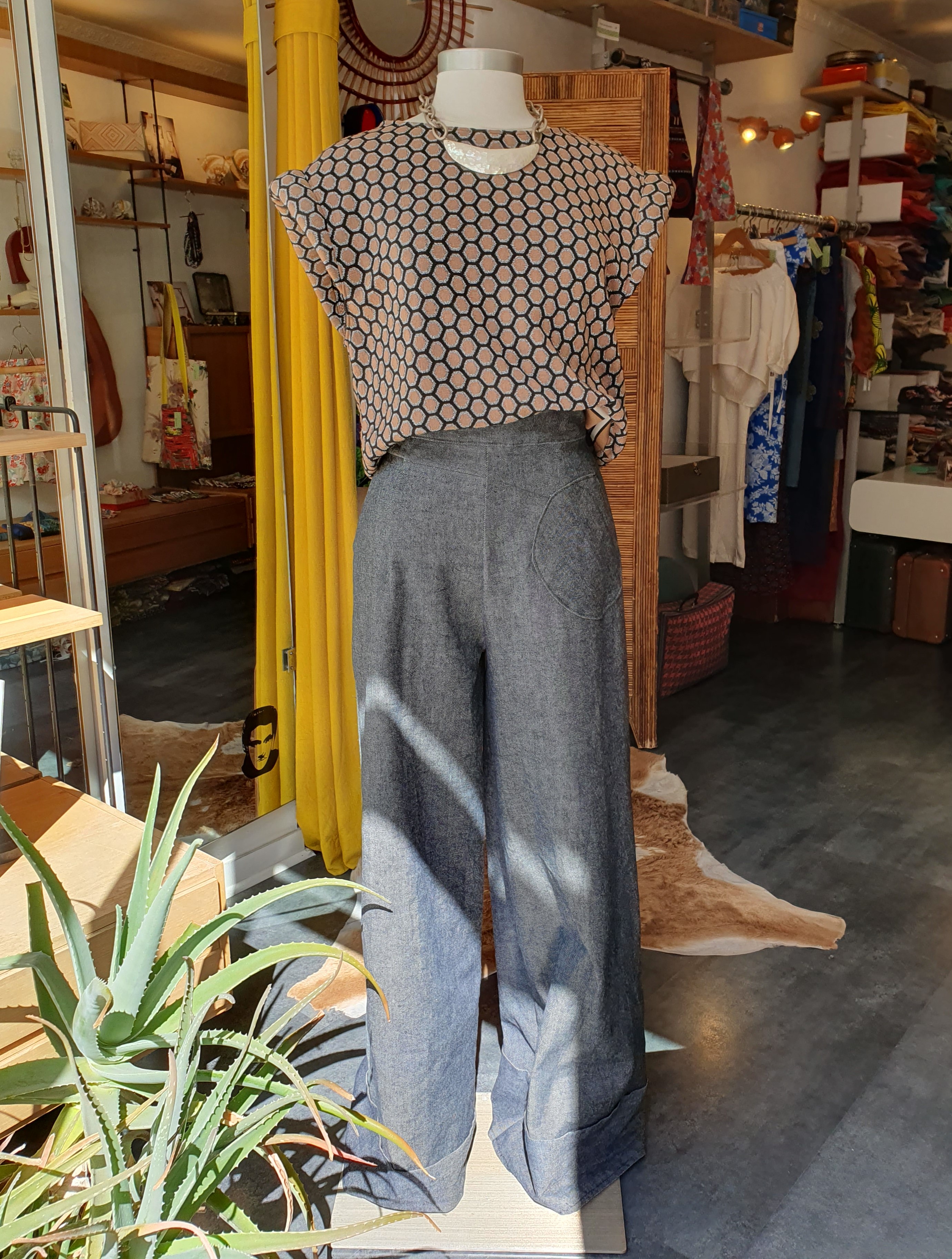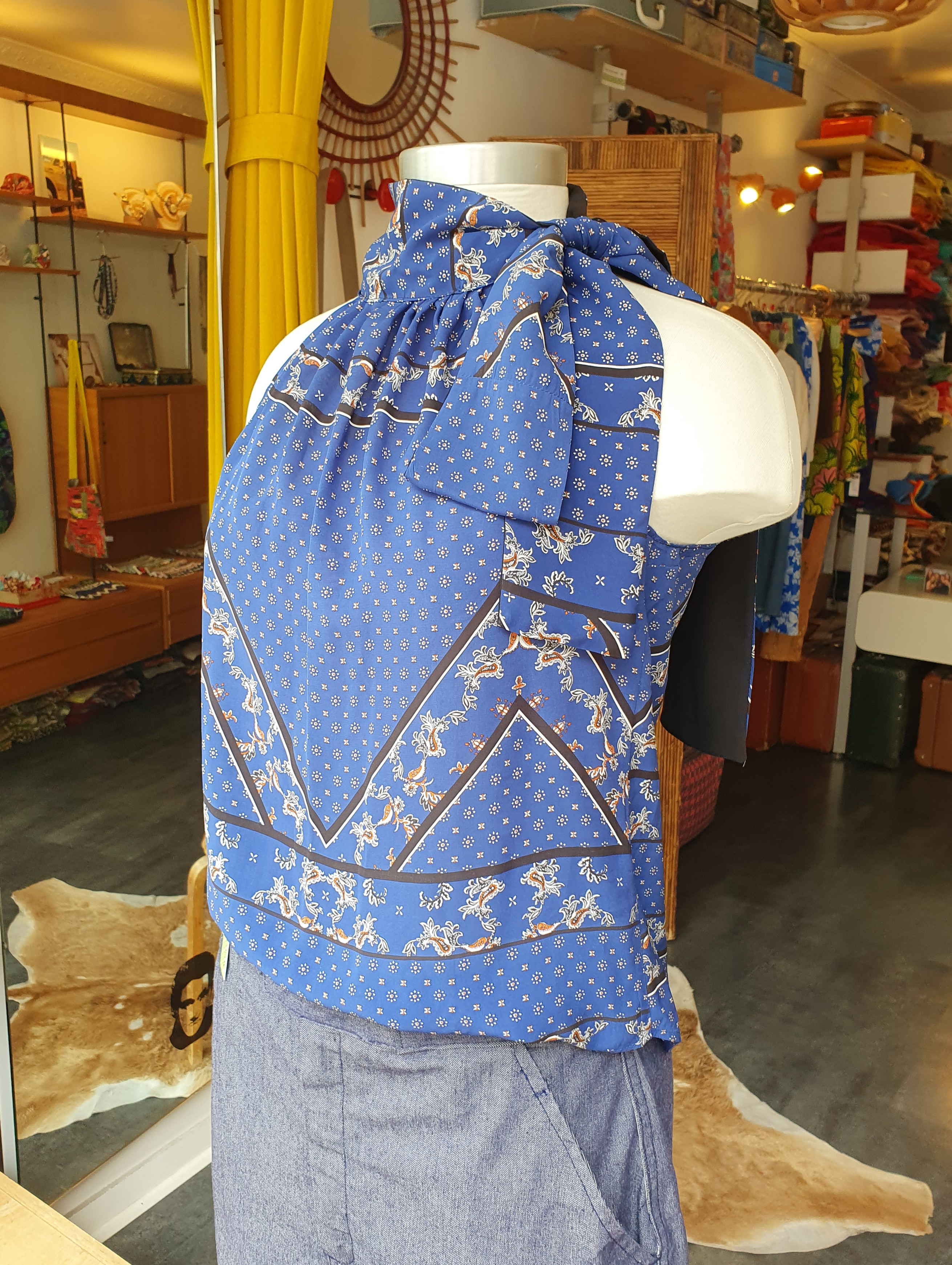 Un sac aux dimensions démesurées, pour ne jamais rien manquer. Forme arrondie mais plat qui rend le sac facile à porter malgré sa grande taille. Fermé par un zip, deux poches intérieures dont une zippée. Tissu d'ameublement vintage, doublé par du coton. Anse en cuir. Dimensions 40cm x 60cm. PIECE UNIQUE